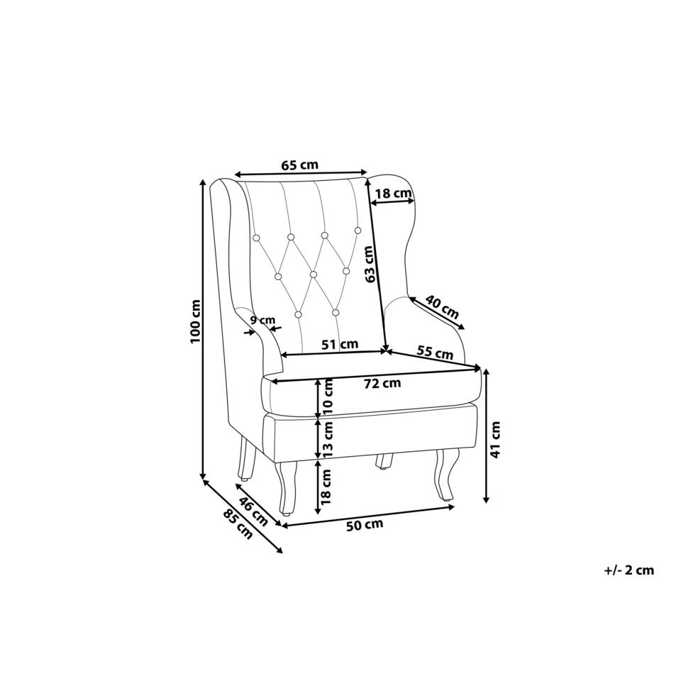Fauteuil van donkerblauw fluweel. Deze salonfauteuil is, dankzij de comfortabele bekleding, moeilijk te overtreffen als het gaan om comfort. Of het nu gaat om een leesstoel of een tv-stoel – deze gezellige oorfauteuil maakt indruk met zijn zithoogte en zijn licht hellende rugleuning. De gebogen en donkere houten poten en de lange rugleuning geven de beige salonstoel iets majestueus. De opzettelijk geplaatste knopversieringen op de rugleuning ronden het elegante ontwerp van de stoel af.