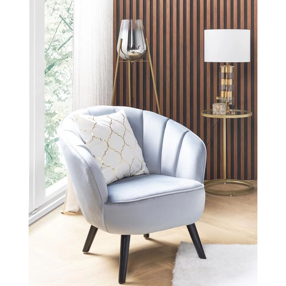 Gestoffeerde stoel in lichtgrijs. Een elegante fauteuil, bekleed met polyester van hoge kwaliteit met fluweelachtige uitstraling. De lichtgrijze kleur maakt het een aantrekkelijke en comfortabele aanvulling op jouw woonkamer of slaapkamer.