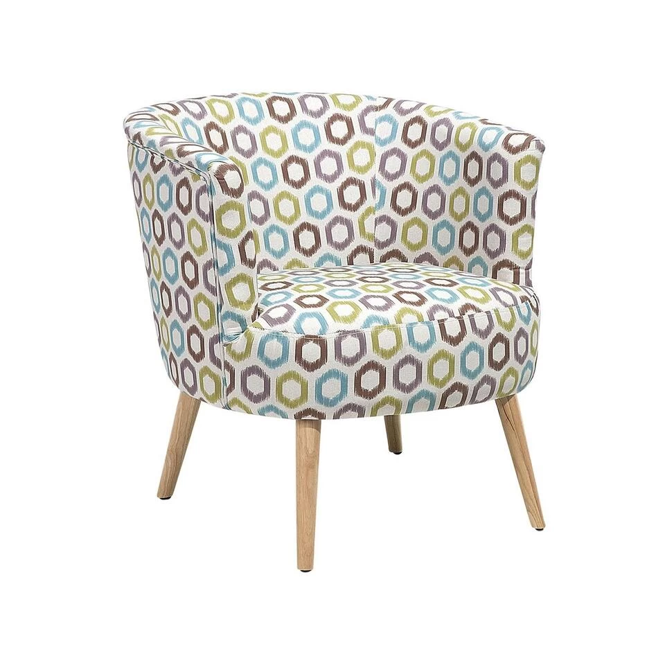 Prettige fauteuil met elegante uitstraling. Deze prachtige fauteuil met zijn patroon van vrolijke, kleurrijke geometrische vormen op een lichte achtergrond is een echte blikvanger. De brede stoel en de comfortabel gevormde rugleuning in goede hoogte nodigen je uit om te ontspannen. De slanke poten van zeer stevig rubberhout geven de stoel stabiliteit. De decoratieve hoes is gemaakt van duurzaam, onderhoudsvriendelijk polyester. Een fauteuil met veel karakter, die bijzonder goed te combineren is met moderne en Scandinavische inrichtingsstijlen, maar met zijn jeugdige en dynamische uitstraling ook past bij veel andere stijlen.
