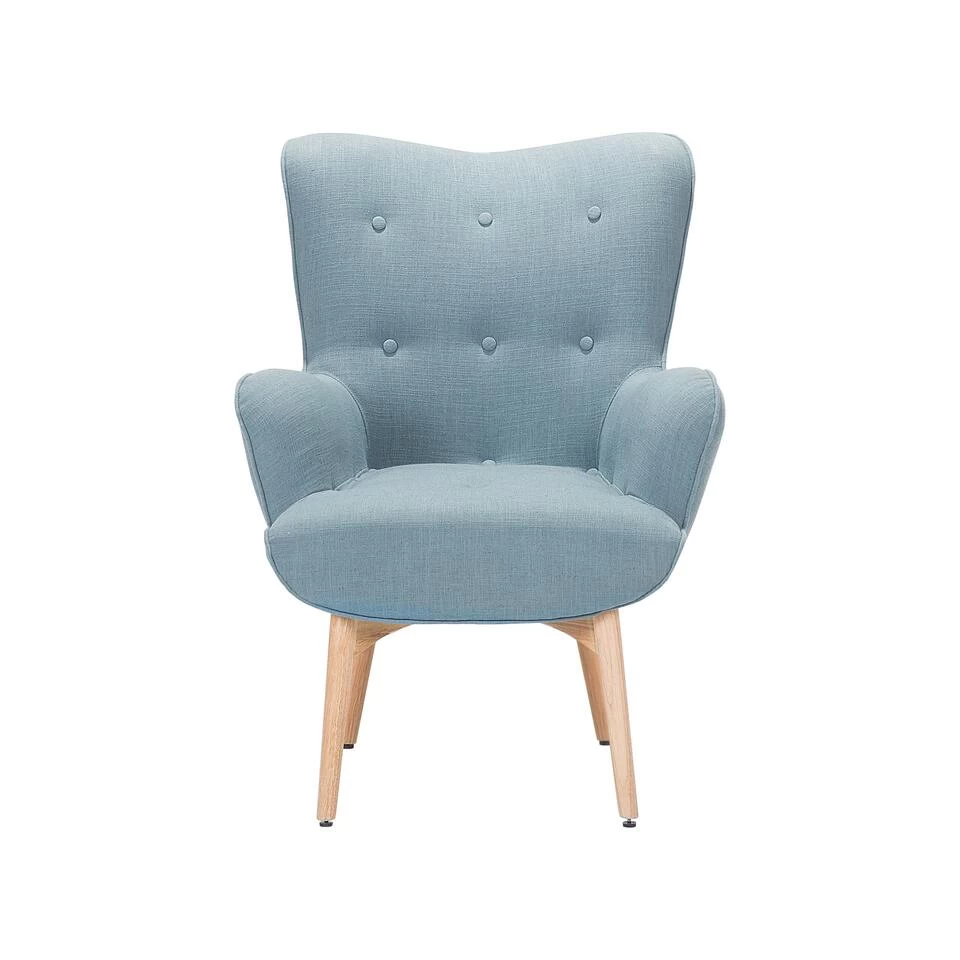 Elegante en zacht gestoffeerde fauteuil met handige hocker. Deze set bestaat uit een fauteuil en een hocker. Met zijn comfortabele zitvorm nodigt de gestoffeerde fauteuil uit tot lange leesavonden. De kruk is niet alleen ideaal als tafeltje, maar ook om je voeten lekker op neer te leggen. De combinatie van modern design en functionaliteit mag in geen enkele woning ontbreken. De rechte poten van de stoffen kruk en fauteuil zijn gemaakt van rubberboomhout. Ze zijn extreem stabiel en zijn perfect te combineren met de donkerblauwe polyester hoes.