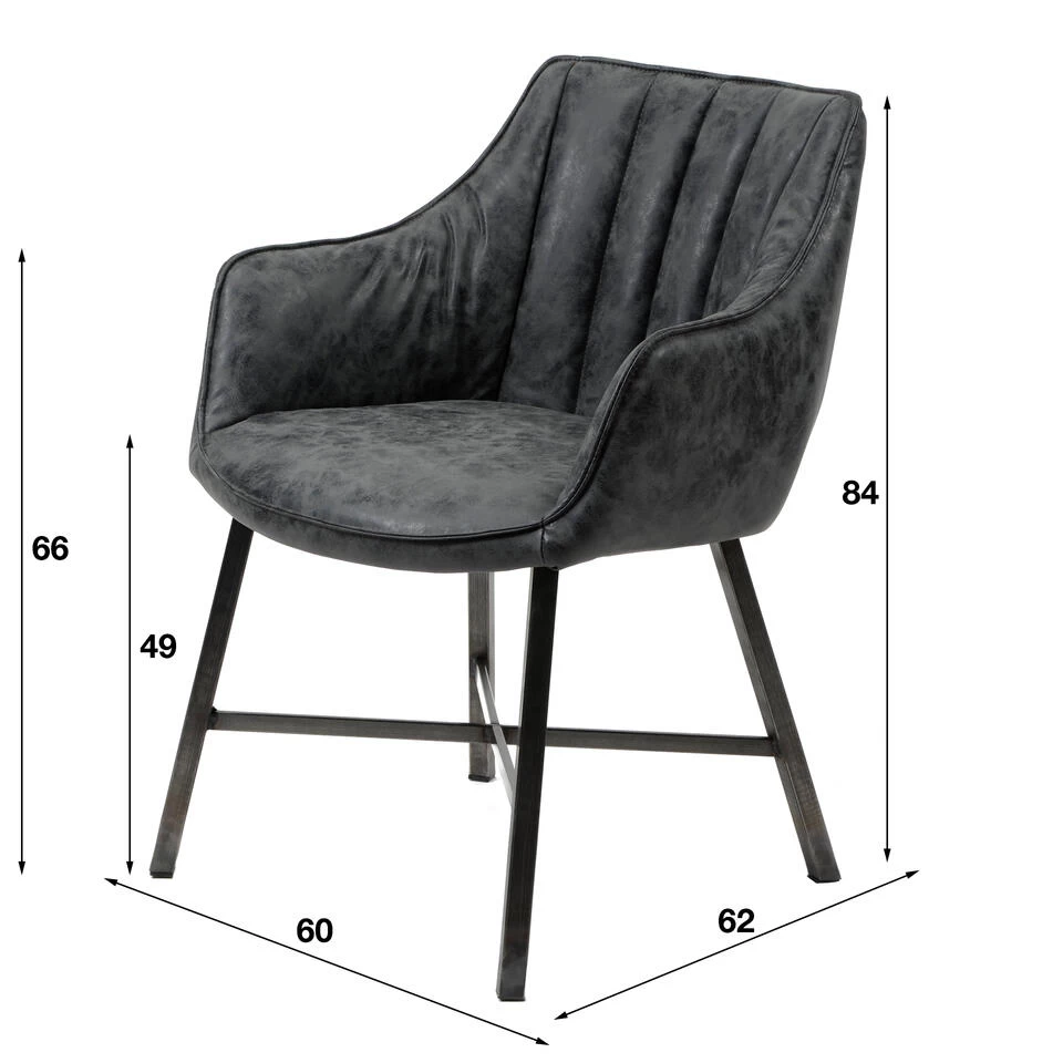 Giga Meubel Eetkamerfauteuil Zwart – PU-Leer – RVS Onderstel