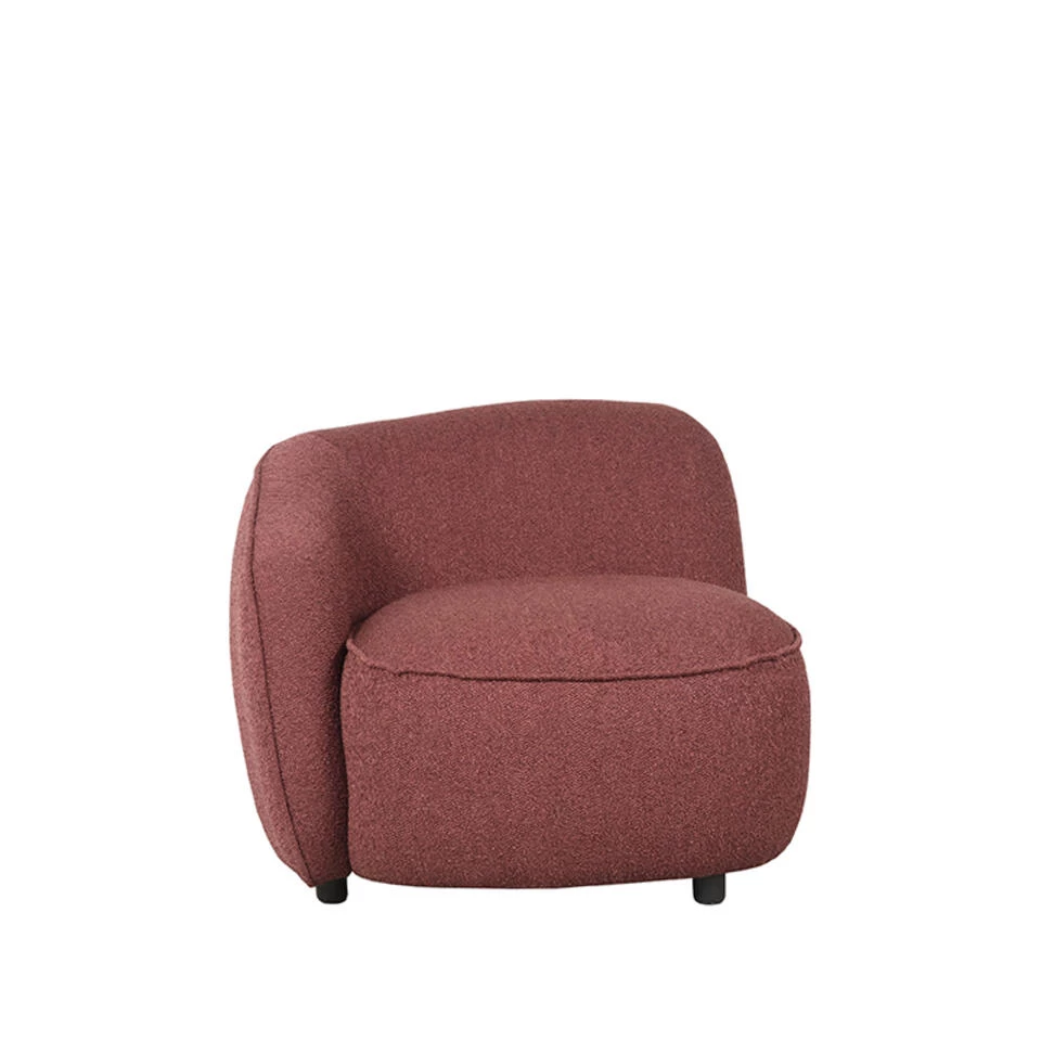 Fauteuil Livo links van LABEL51 is een luxe en zeer kwalitatieve fauteuil, uitgevoerd in wine red chic bouclé. Livo vormt met zijn indrukwekkende design, bestaand uit organische vormen een echt pronkstuk in een interieur. Livo is extra bijzonder omdat het gaat om een asymmetrische fauteuil die individueel te gebruiken is naast een gave sidetable of te combineren is met een Livo fauteuil rechts, waardoor er een gezellig tafereel ontstaat.
